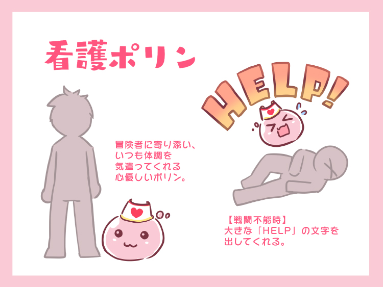 キャラクターが「攻撃」「戦闘待機」「ダメージ」状態のときは、装備グラフィックが非表示になるデザインです