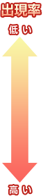 ・アイテムにはそれぞれ出現率が設定されており、出現率順の数字が小さいアイテムほど、出にくくなっております。なお、アイテム名の横の数字が同じ場合、出現率も同じです。