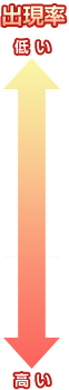 ・アイテムにはそれぞれ出現率が設定されており、出現率順の数字が小さいアイテムほど、出にくくなっております。なお、アイテム名の横の数字が同じ場合、出現率も同じです。