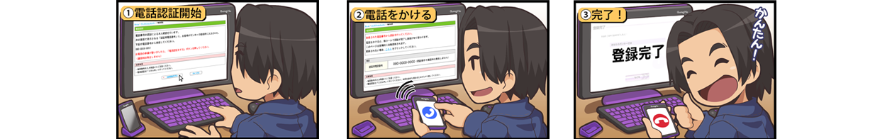 - ・通話料不要で手早く簡単に認証できる