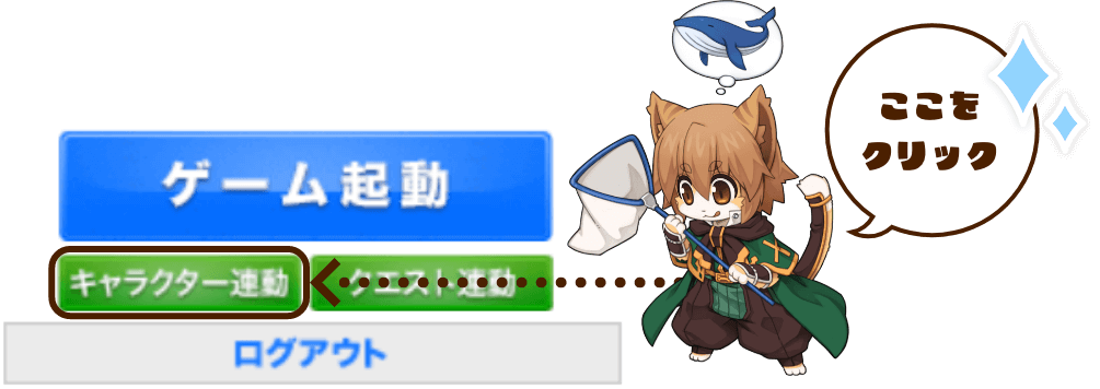 調べたい人は、ラグナロクオンライン公式サイトにログイン後、ゲームアカウントを選択してから、「ゲーム起動」ボタンの下にある「キャラクター連動」をクリックしよう。