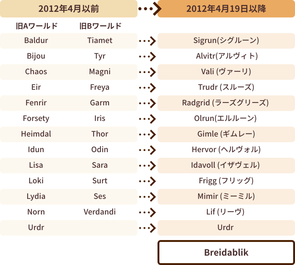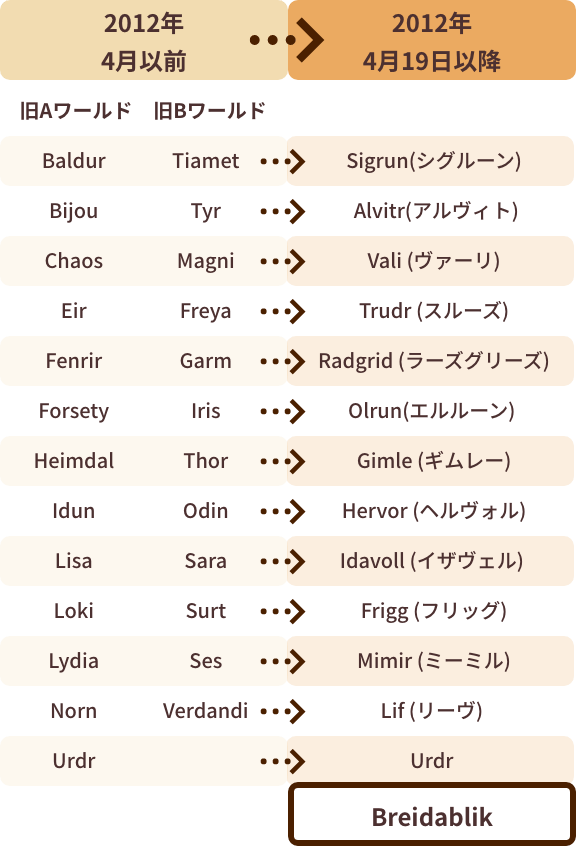 確認しよう2012年4月に10周年記念施策として、(Urdrワールドを除く)2ワールドずつを1ワールドに統合!