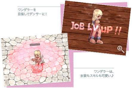 このダンサーの衣装の上位の職業がワンダラーっていうんですけど、ゲーム内で自分が転職したら、早く衣装も作らなきゃって(笑)。パーティーメンバーをサポートする支援系の職業がやっぱり好きです。だって、この衣装、可愛いじゃないですか~♪