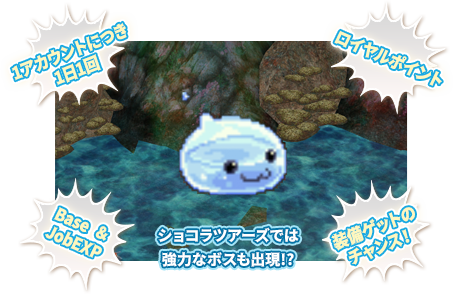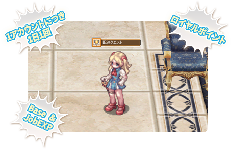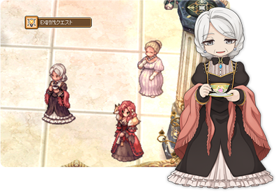 プロンテラの七王家の人間たちが集まり、それぞれの王家が「特別なお菓子」を振舞い親交を深めるお茶会――通称「ロイヤル・ティーパーティー」功績を認められた冒険者も招待されることになるが、冒険者を出迎えたのは「ショコラ=バシニオ」だった。ショコラの話によると、お茶会では王族たちがお茶と一緒に味わうお菓子の「品評会」を行っており、週ごとに変わる審査員(=王族たち)を満足させることができれば特別なご褒美をもらうことができるらしい。今回の品評会では、チョコレートの老舗「バシニオチョコ」がお菓子作りを担当することになったのだが、材料が不足していたり、注文した荷物が届いてなかったりとトラブル続きで困っている様子。ショコラの話を聞いた冒険者はお茶会を成功させるため、トラブル解決に乗り出すのだった!